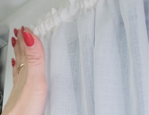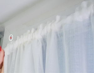 1) Приложить штору вместе с креплениями к раме.2) Отметить точку крепежа.3) Снять скотч и приклеить крепление уголками вверх.4) Приложить нижнюю часть шторы вместе с креплениями и отмерить точку нижнего крепежа без натяжения ткани.5) Закрепить крепежи на обезжиренной поверхности.6) Надеть штору на нижние крепежи.